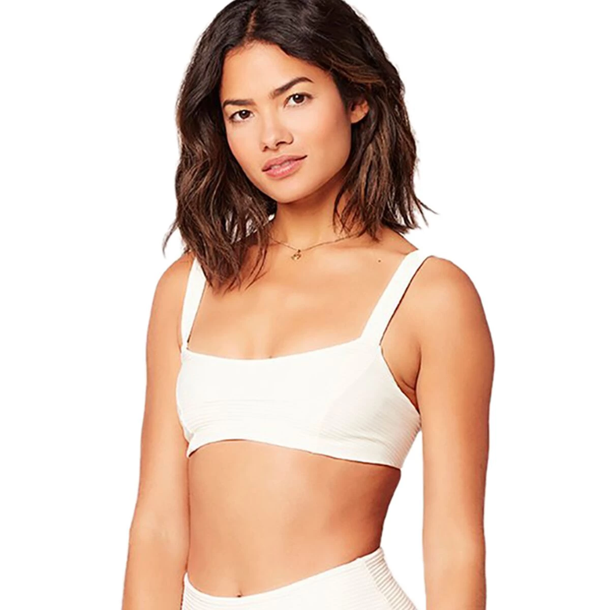 - Bralette style stays on securely while swimming