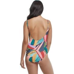 - Sporty one-piece swimsuit for beach bumming and poolside lounging
