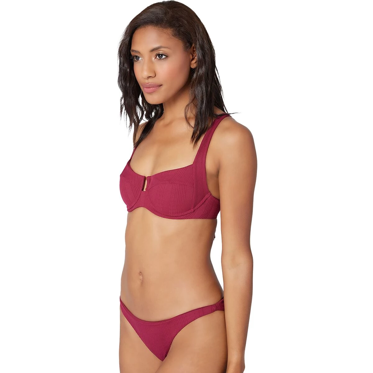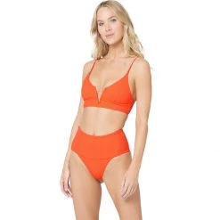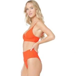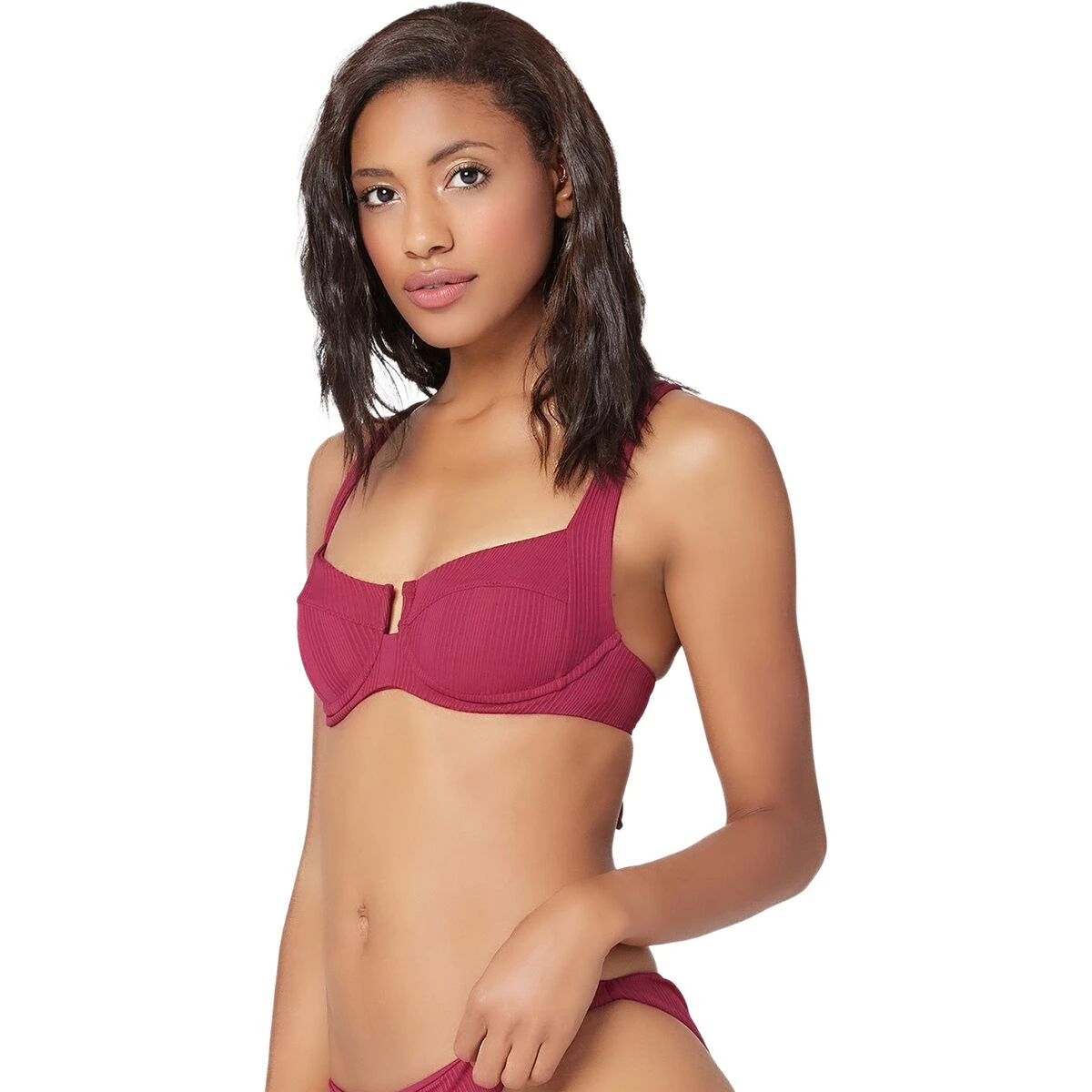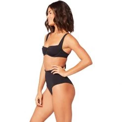 This fashionable bikini top provides us with reinforcement that we could only dream of getting from a swimsuit. The fit is highly customizable thanks to the shoulder straps that transition to a lace-up tie back. The underwire cups and thick, supportive straps ensure that we’re ready to play hard until sunset.