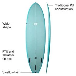 - Vintage-inspired fish board for having fun on weak waves